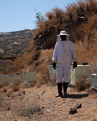Wildflowers bloom briefly in winter and spring, and bees feed on wild thyme, oregano, fava and pistachio.