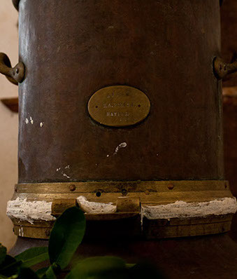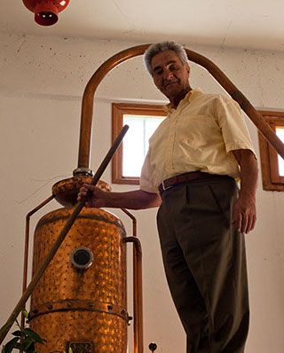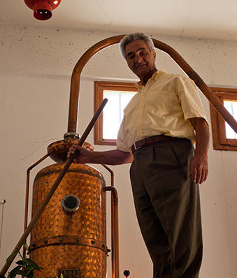 The finest essence comes from citron leaves, the huge fruit has thick pith and little juice. Using ancient methods, our artisanal supplier in Naxos, meticulously selects leaves from the remaining 2000 trees. Especially for Volkan, these craftsmen then thrice distil the mash of leaves and alcohol in 100-year-old copper still, like a fine perfume of old.