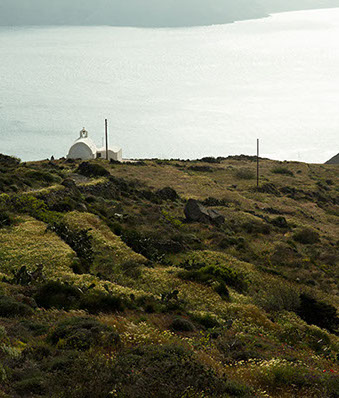 Santorini is volcanic and unique. Our spectacular island receives little rainfall, so what grows is intense in flavour and aromas and limited in quantity.